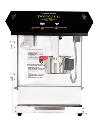 Enjoy the theatre experience in your own home. The antique style Golden 113.4 g (4 oz.) Popcorn Machine evokes memories of early days at the ball games, carnivals, or the movie theater. Popcorn available,